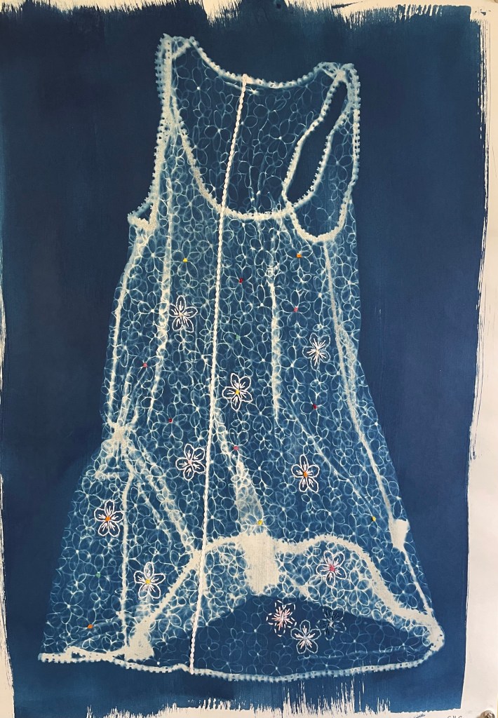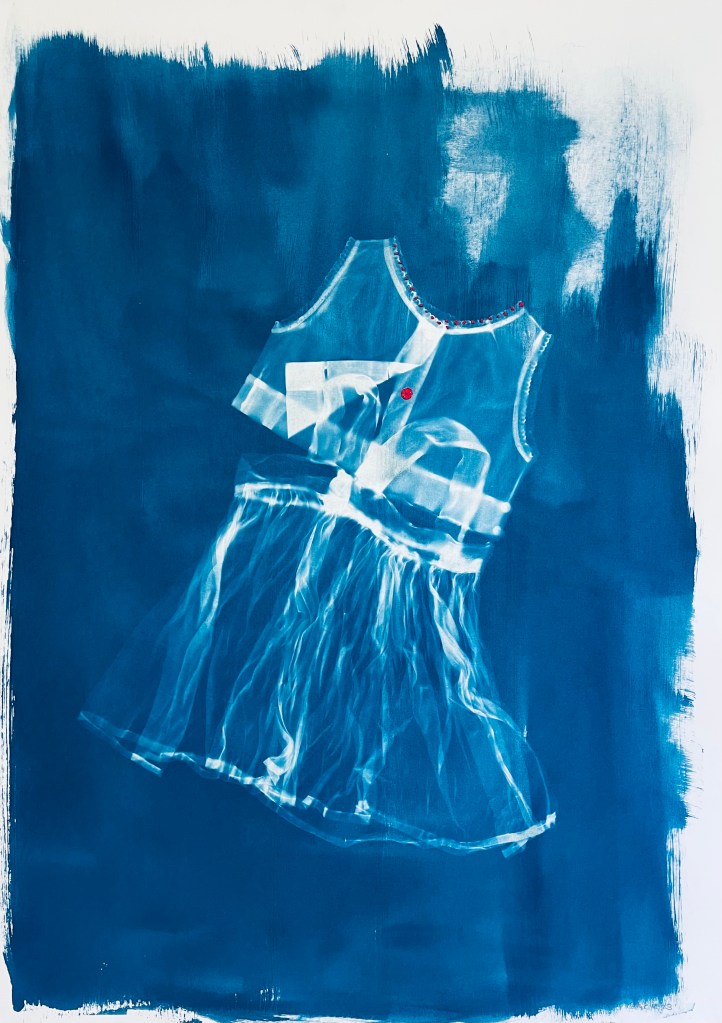 Reliques ( petites robes) : cyanotypes sur papiers divers et papier japonais